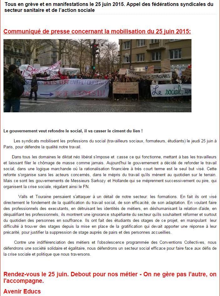 RASSEMBLONS NOUS CONTRE LA REFONTE DES METIERS DU SOCIAL LE 25 juin MANIFESTATION RDV à Bir-Hakeim à 9h00 ...