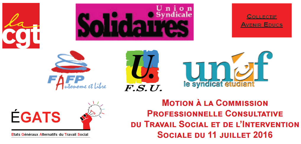 Motion à la Commission Professionnelle Consultative du Travail Social et de l’Intervention Sociale du 11 juillet 2016